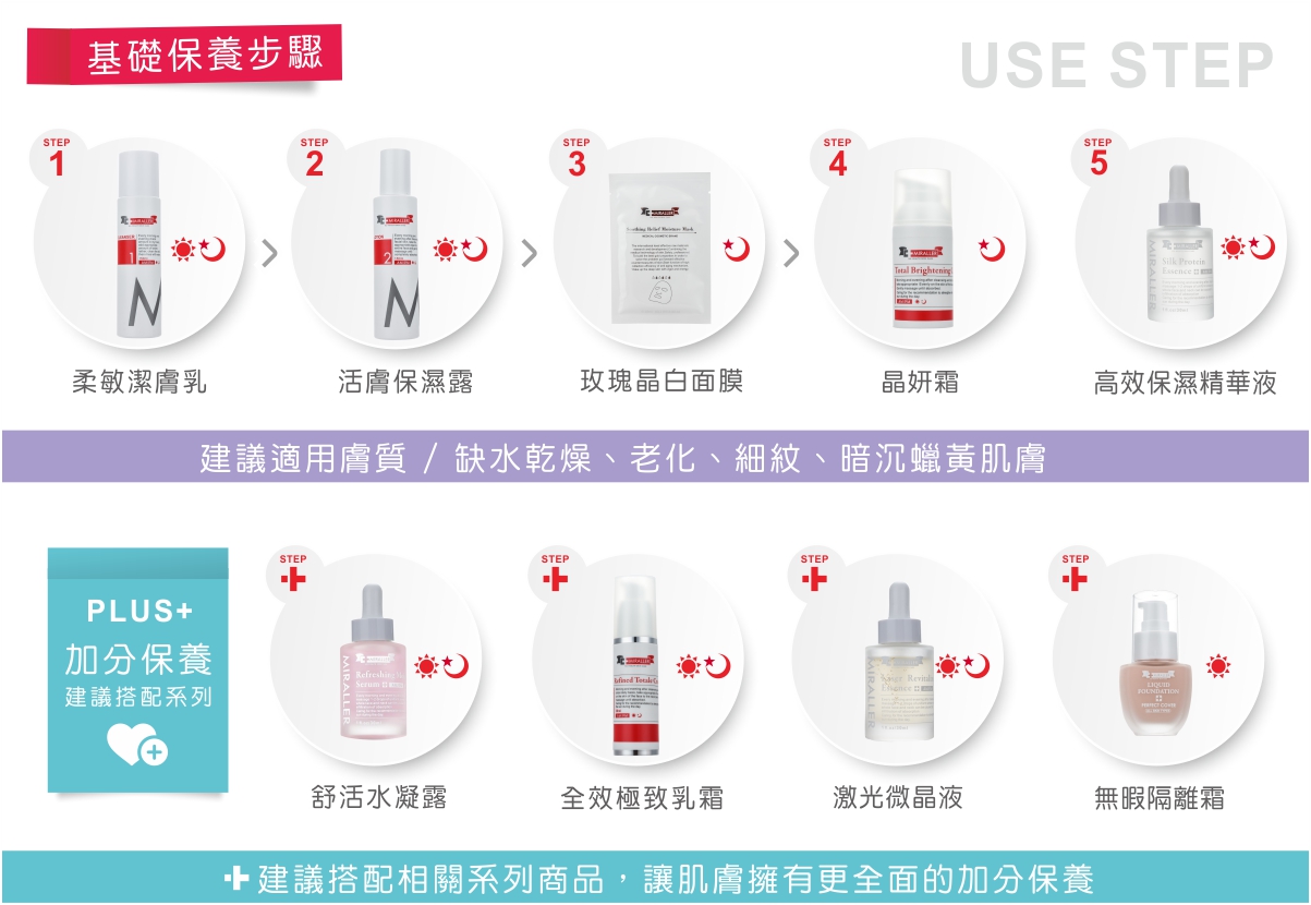 所有膚質均適用,尤以乾性,敏感性肌膚及術後肌膚適用。