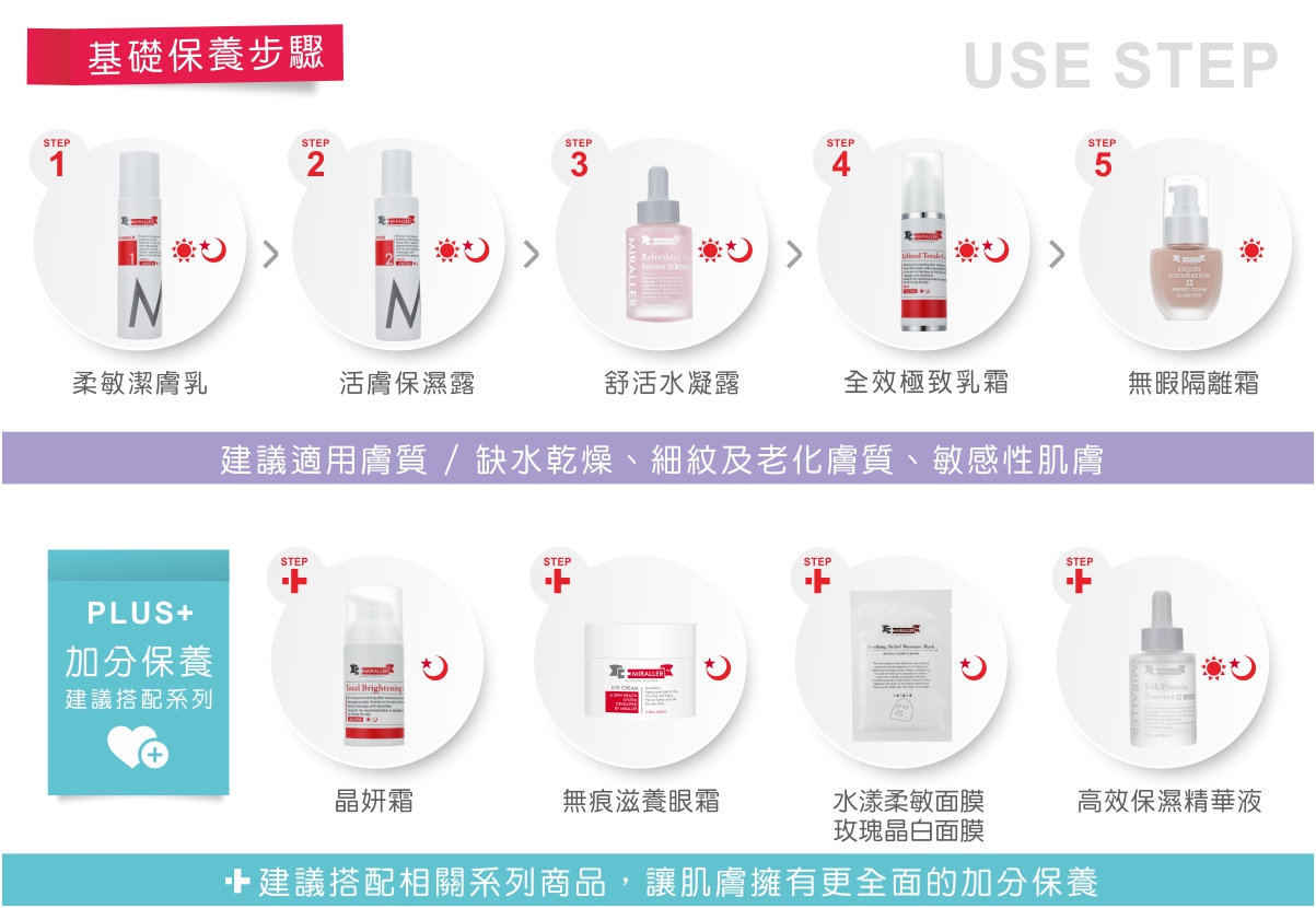 ﹥敏感肌膚者,請先在手臂內側做局部測試,無敏感反應方可使用。